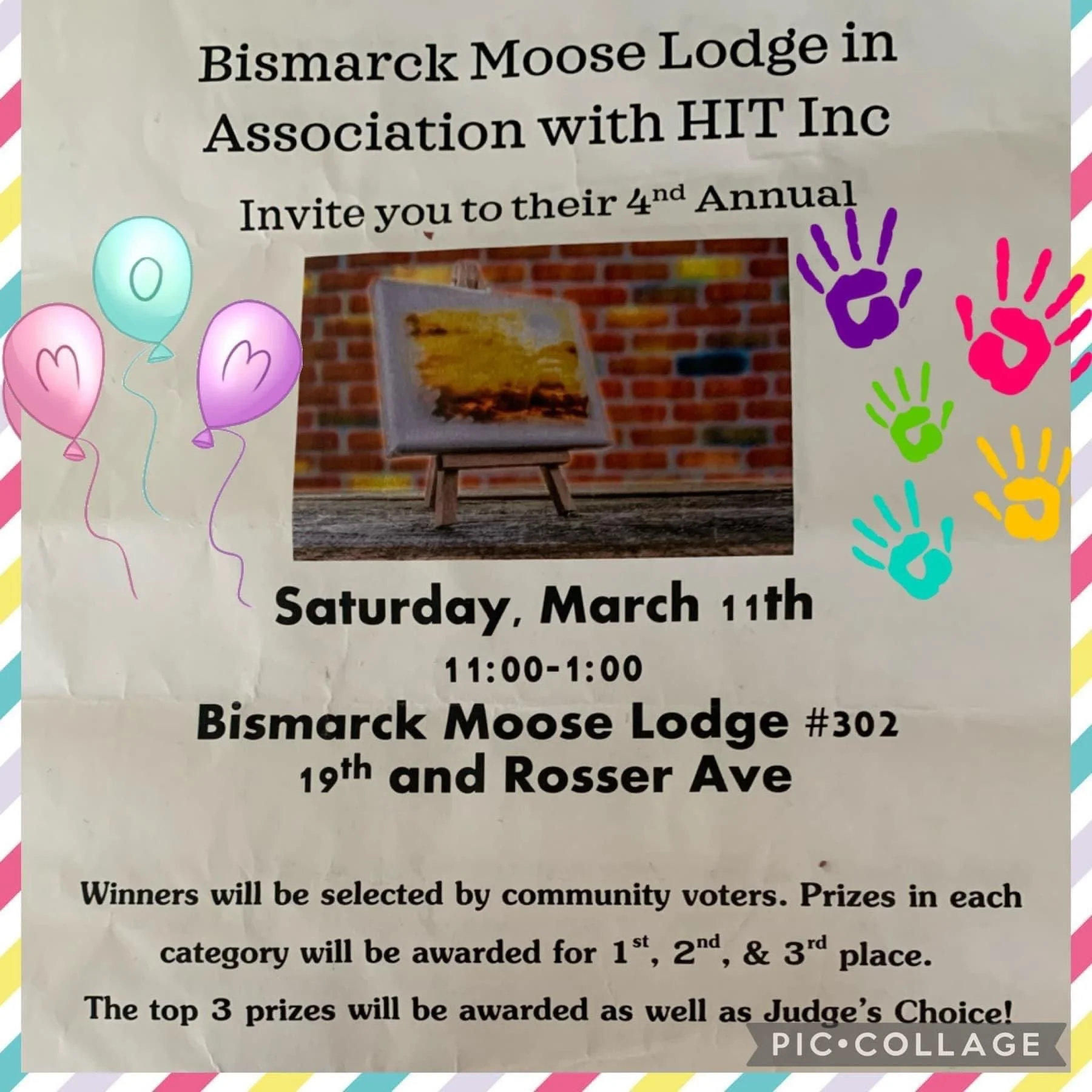 HIT Inc Art Show Saturday, March 11, 2023 11:00 AM 1:00 PM Bismarck Moose Lodge #302 312 North 20th Street Bismarck, ND, 58501 United States (map) Google Calendar ICS