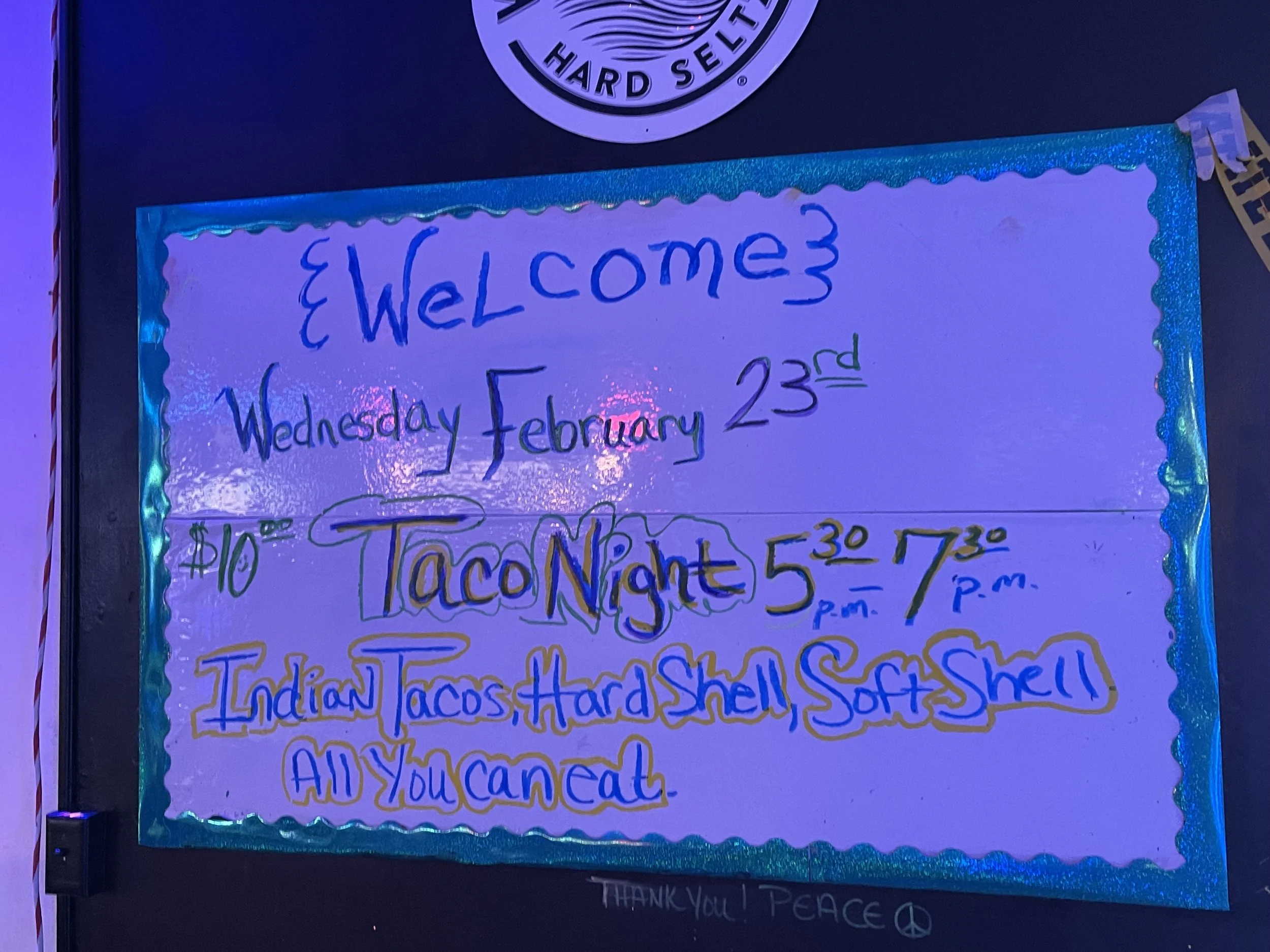 Several times a year, members of the Bismarck Moose Lodge enjoy Taco Nights! Frybread, hard shell and soft shell tacos with all the fixings!